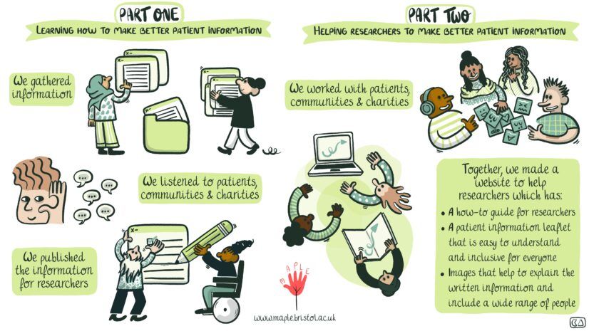 MAPLE stands for Making trials more accessible through better patient information leaflets. It involves researchers from the University of Bristol working in partnership with National Voices, minoritised community organisations, charities and patients.